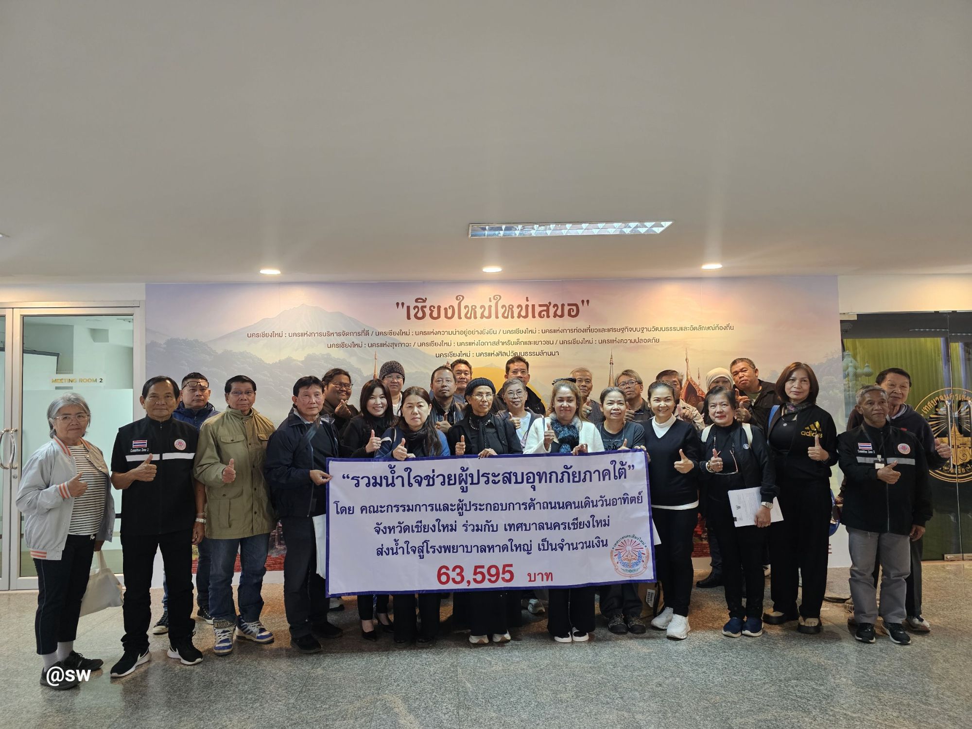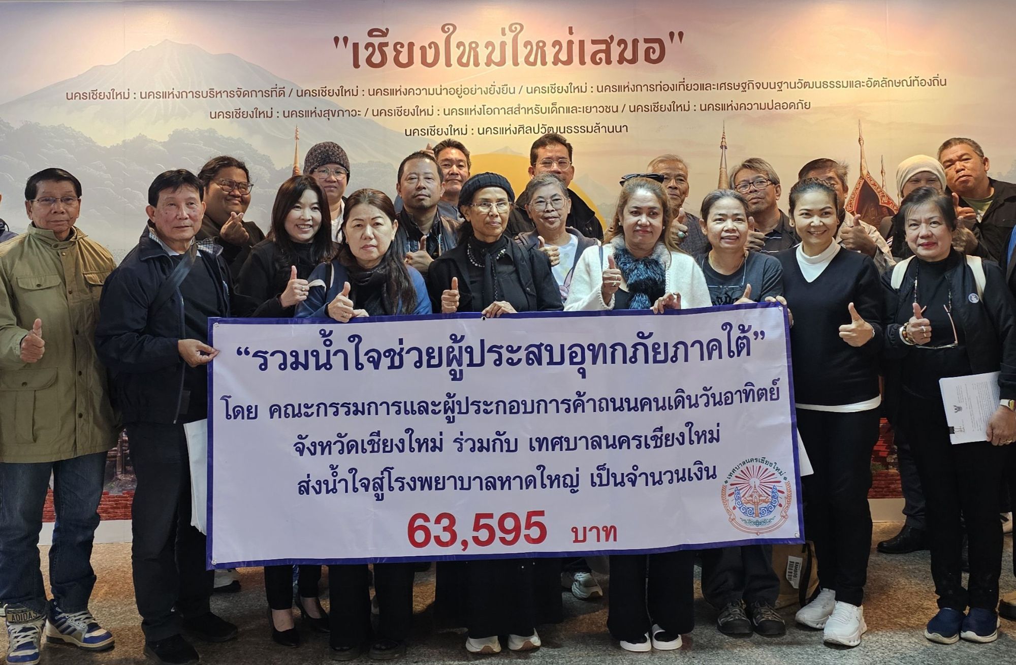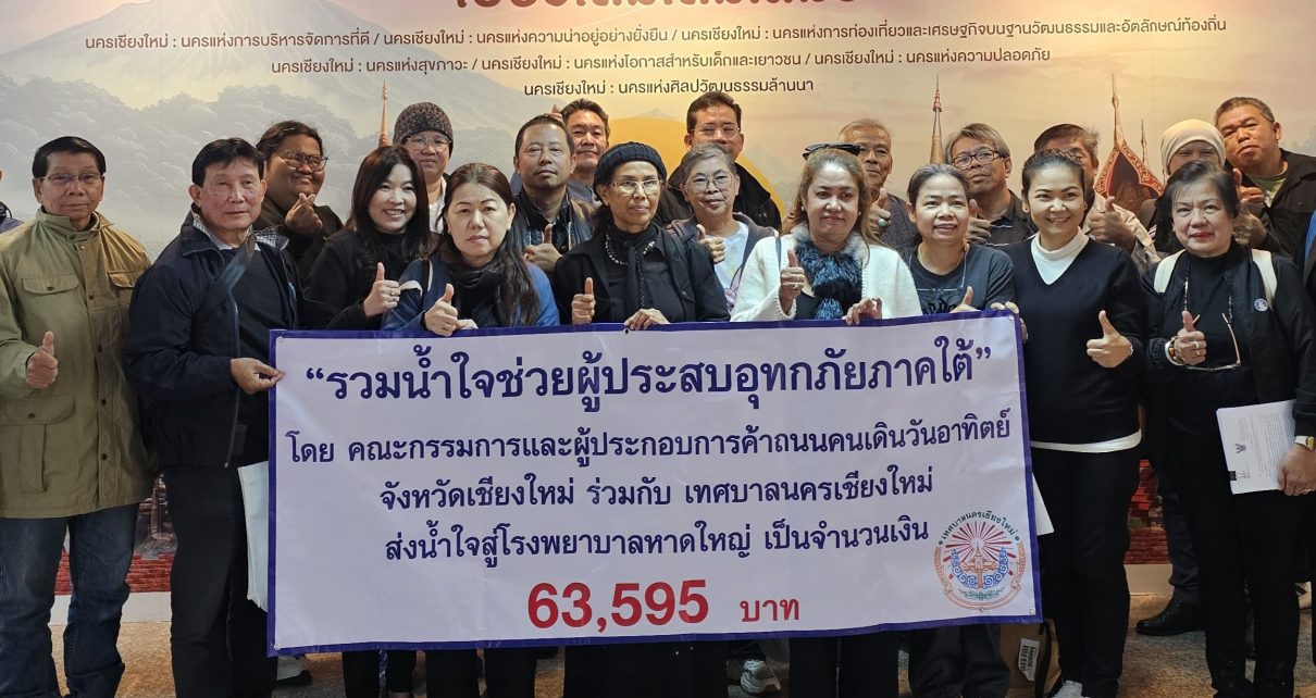 ผู้ค้าถนนคนเดินวันอาทิตย์เชียงใหม่รวมใจบริจาคเงินกว่าครึ่งแสนบาทสมทบทุนฟื้นฟูโรงพยาบาลหาดใหญ่ พร้อมข้าวของช่วยเหลือผู้ประสบภัยน้ำท่วม