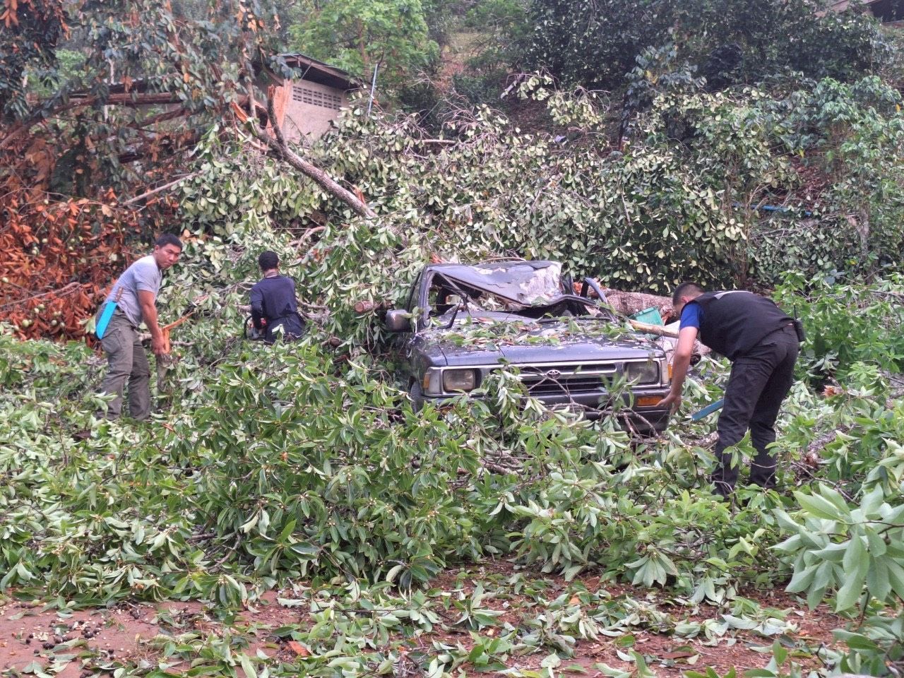 1) ต้นไม้หักโค่นปิดทับเส้นทาง ทางหลวงแผ่นดิน 1095 แม่มาลัย-ปาย บริเวณบ้านผาเด็ง ได้ดำเนินการตัดต้นไม้เปิดเส้นทาง และแก้ไขระะบบไฟฟ้า สามารถปล่อยกระแสไฟฟ้าและสามารถใช้ถนนสัญจรได้เป็นปกติ