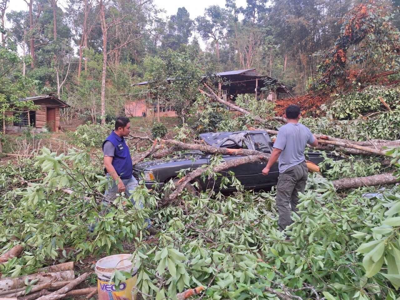 กอปภ.อ.แม่แตง เร่งลงพื้นที่สำรวจความเสียหายเหตุวาตภัยในพื้นที่