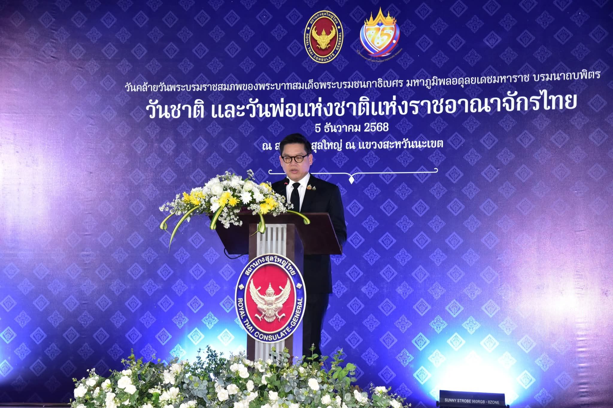 วันที่ 4 ธันวาคม 2568 เวลา 17.30 น. คณะผู้บริหารจังหวัดมุกดาหารนำโดย นายวรญาณ บุญณราช ผู้ว่าราชการจังหวัดมุกดาหาร พร้อมด้วย นางอัญชลี กัลมาพิจิตร นายกเหล่ากาชาดจังหวัดมุกดาหาร ,นางปณิดา พันธุ์โชติ และ นายชลิต ทิพย์คำ รองผู้ว่าราชการจังหวัดมุกดาหาร และผู้ว่าราชการจังหวัด จังหวัดนครพนม อำนาจเจริญ และอุบลราชธานี รวมถึงหัวหน้าส่วนราชการ ภาคเอกชน เดินทางไปร่วม งานเลี้ยงรับรองเนื่องในโอกาสวันคล้ายวันพระบรมราชสมภพ พระบาทสมเด็จพระบรมชนกาธิเบศร มหาภูมิพลอดุลเดชมหาราช บรมนาถบพิตร วันชาติ และวันพ่อแห่งชาติ ประจำปี 2568 ณ สถานกงสุลใหญ่ ณ แขวงสะหวันนะเขต สปป.ลาว