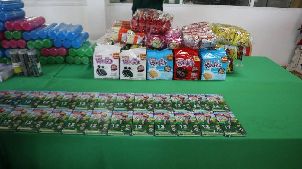 เหล่ากาชาดจังหวัดมุกดาหาร สนับสนุนทุน อุปกรณ์การเรียน ข้าวสารอาหารแห้ง และขนม