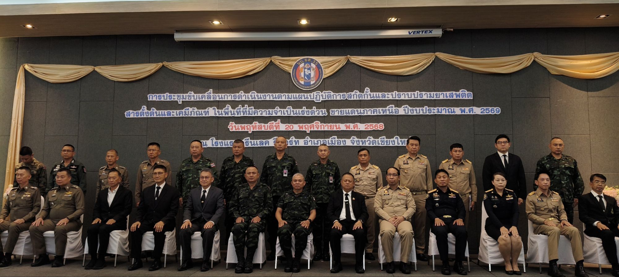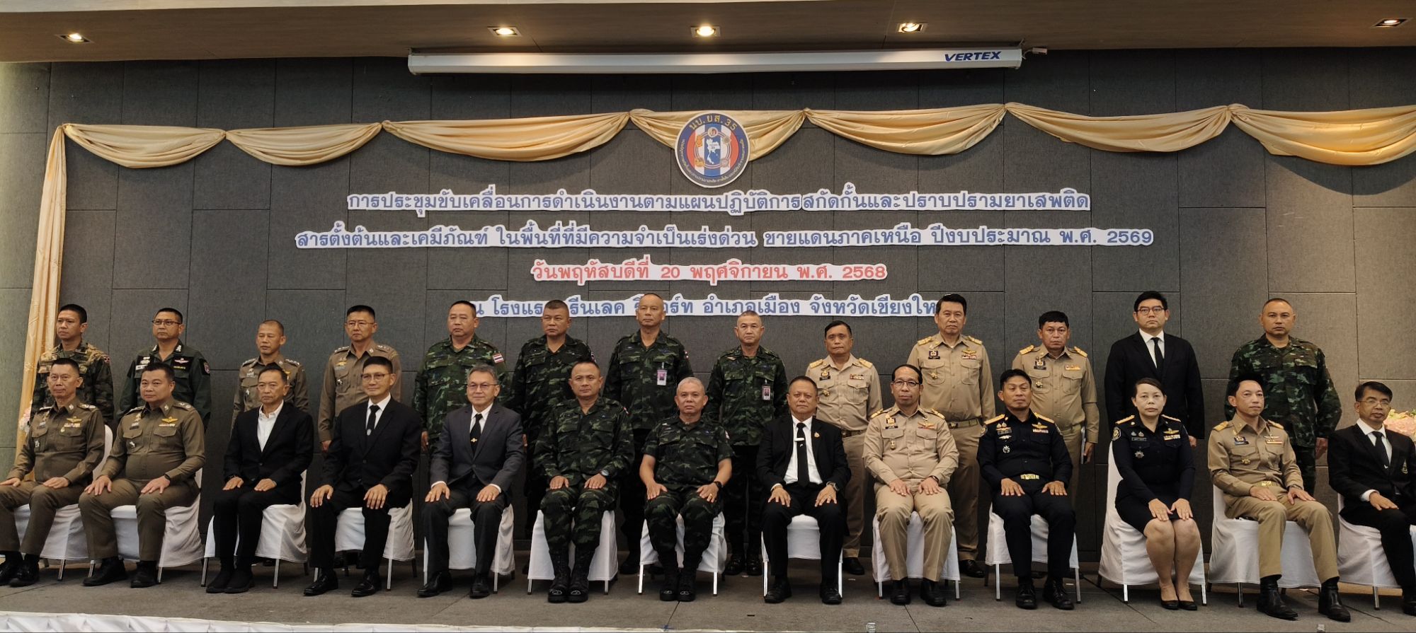 เมื่อวันที่ 20 พฤศจิกายน 2568 ณ โรงแรมกรีนเลค รีสอร์ทเชียงใหม่ อำเภอเมืองเชียงใหม่ จังหวัดเชียงใหม่ หน่วยบัญชาการสกัดกั้นและปราบปรามยาเสพติด สารตั้งต้น และเคมีภัณฑ์ ชายแดนภาคเหนือ (นบ.ยส.35) ได้จัดประชุมขับเคลื่อนการดำเนินงานตามแผนปฏิบัติการสกัดกั้นและปราบปรามยาเสพติด สารตั้งต้นและเคมีภัณฑ์ ในพื้นที่ที่มีความจำเป็นเร่งด่วนชายแดนภาคเหนือ
