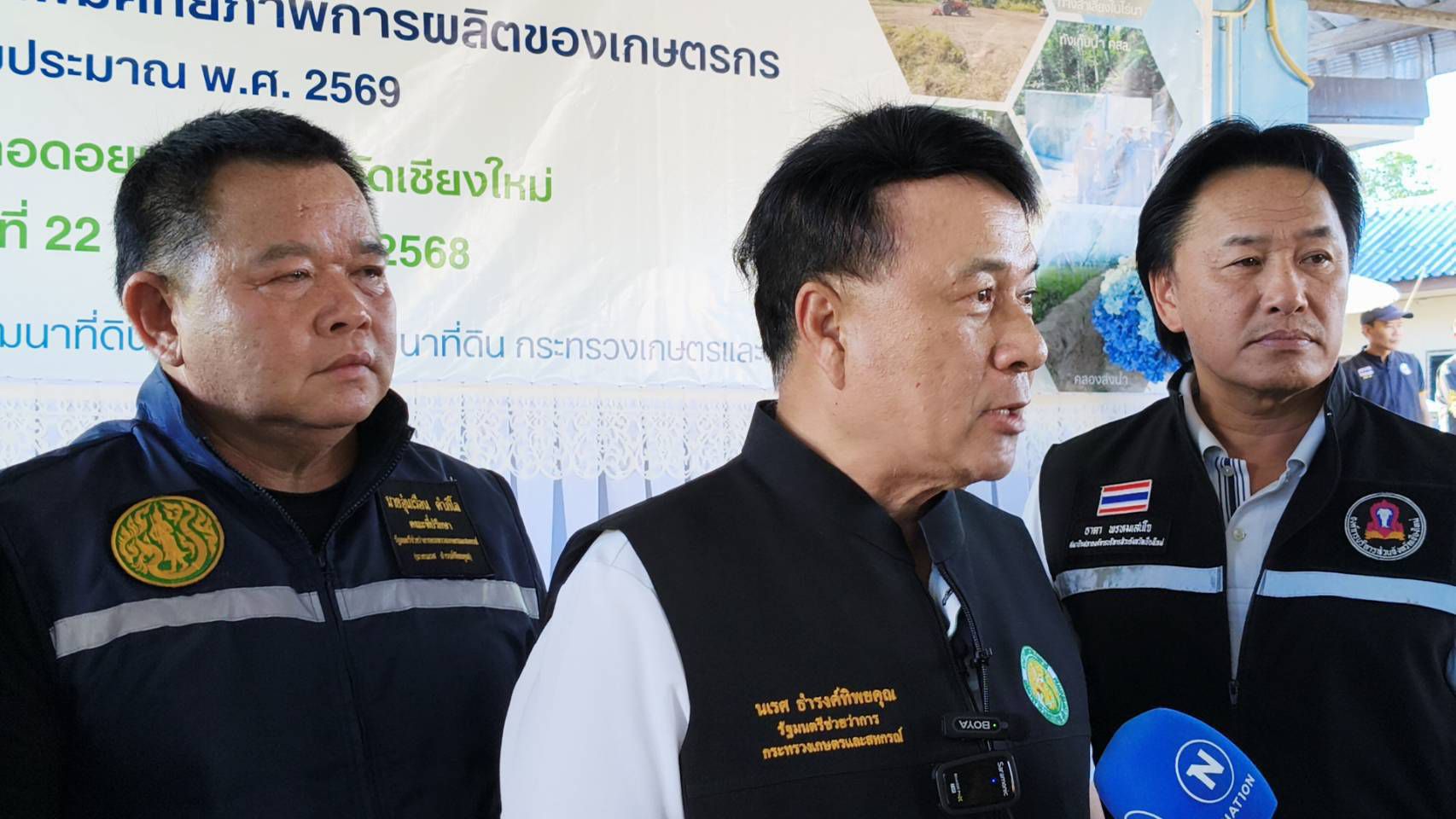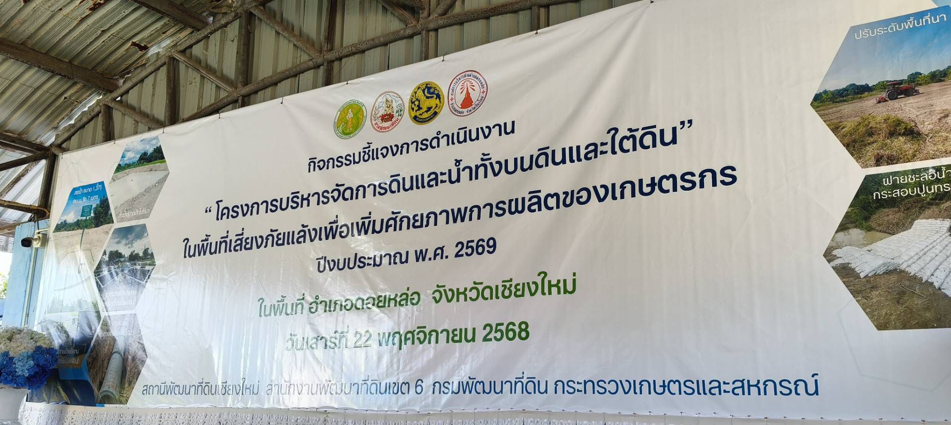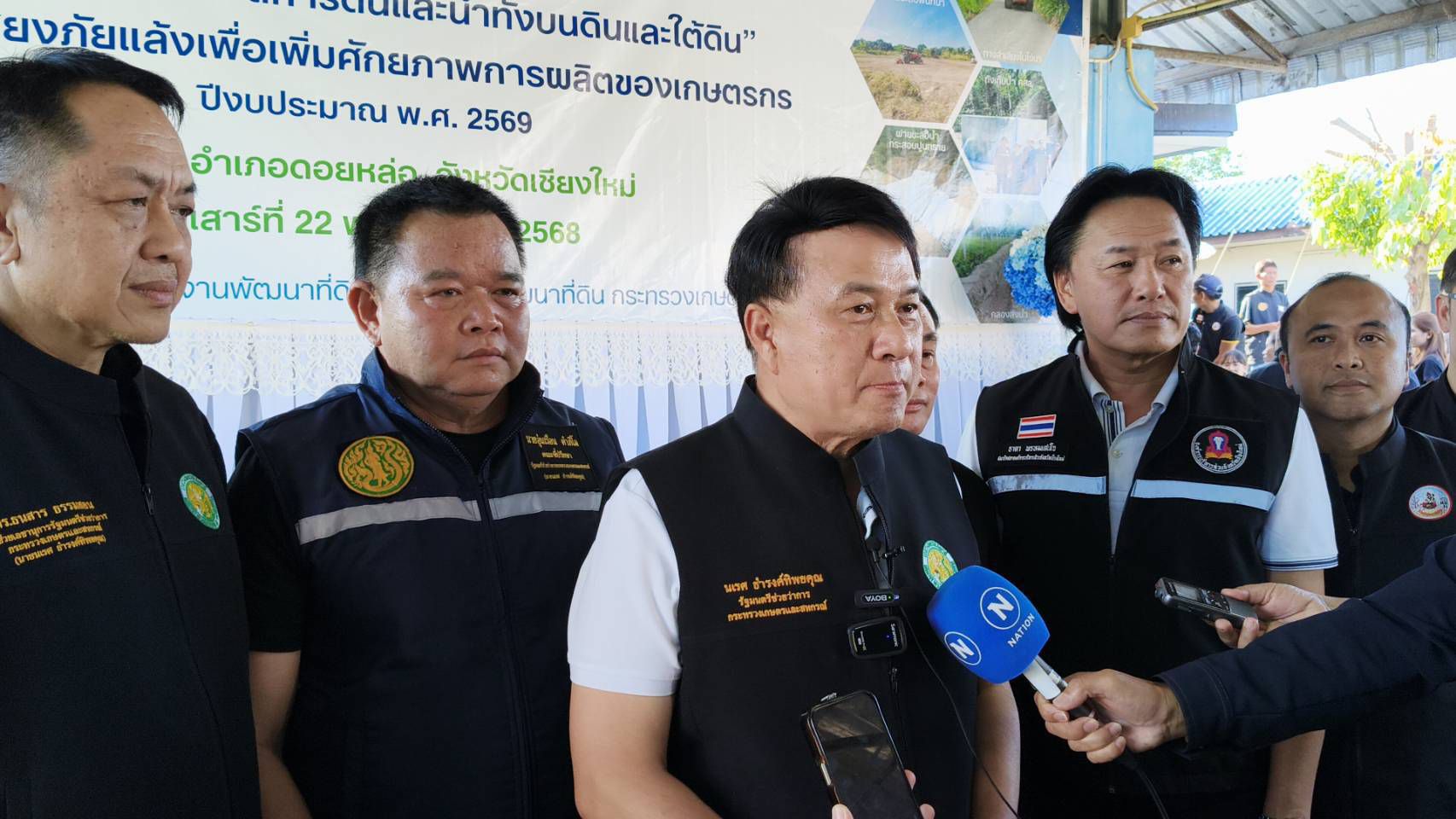 รมช.เกษตรฯ ลงพื้นที่เชียงใหม่ เปิดแผนปฏิบัติการปี 69 จัดการ “ดิน-น้ำ” แบบบูรณาการที่ดอยหล่อ เร่งสร้างแหล่งน้ำสำรองทั้งบนดินและใต้ดิน มุ่งแก้ปัญหาภัยแล้งยั่งยืน เมื่อวันที่ 22 พฤศจิกายน 2568 นายนเรศ ธำรงค์ทิพยคุณ รัฐมนตรีช่วยว่าการกระทรวงเกษตรและสหกรณ์ ลงพื้นที่อำเภอดอยหล่อ จังหวัดเชียงใหม่ เป็นประธานเปิดกิจกรรม “ชี้แจงการดำเนินงานโครงการบริหารจัดการดินและน้ำทั้งบนดินและใต้ดิน ในพื้นที่เสี่ยงภัยแล้ง เพื่อเพิ่มศักยภาพการผลิตของเกษตรกร ปีงบประมาณ พ.ศ. 2569” ณ อาคารศูนย์ส่งเสริมอาชีพเทศบาลตำบลยางคราม โดยมีหัวหน้าส่วนราชการ ข้าราชการ หมอดินอาสา และเกษตรกรในพื้นที่ให้การต้อนรับ