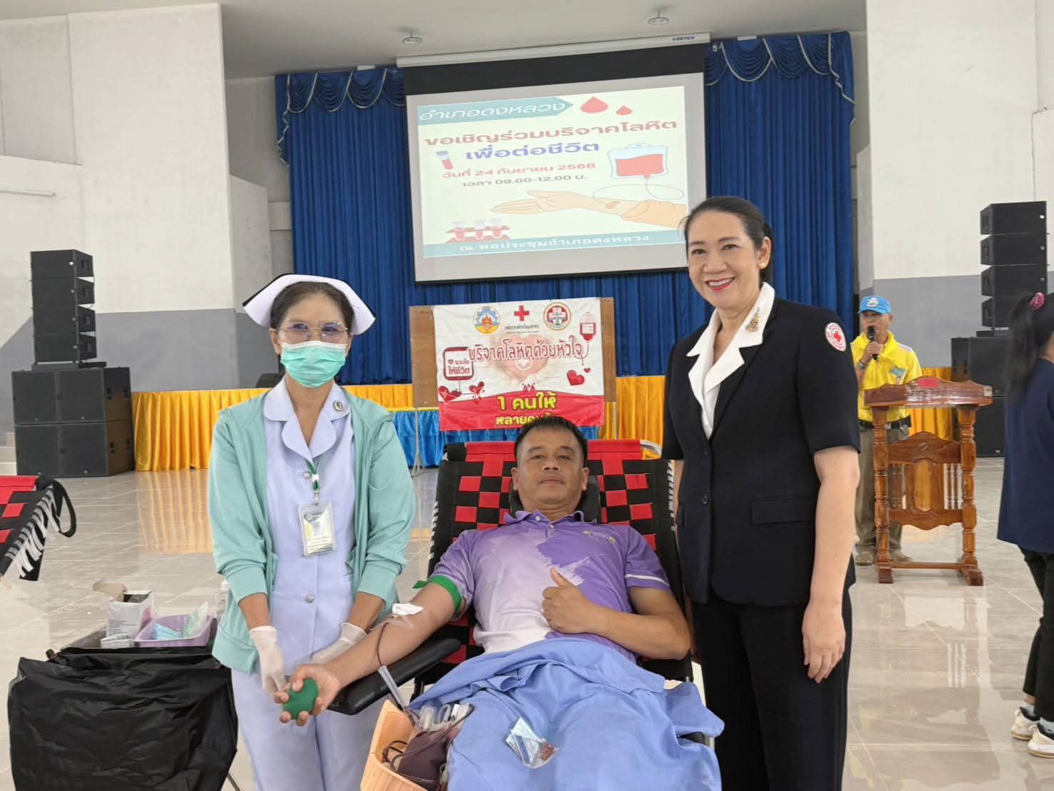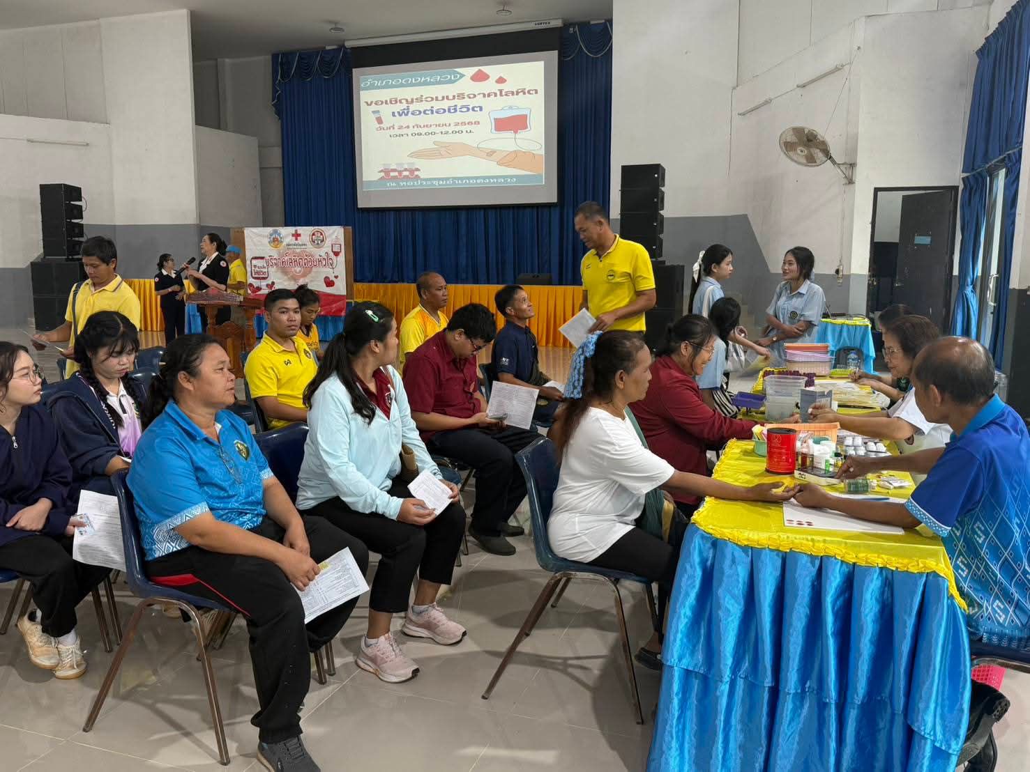 เมื่อวันที่ 24 กันยายน 2568 เวลา 09.00 น. นางอัญชลี กัลมาพิจิตร นายกเหล่ากาชาดจังหวัดมุกดาหาร พร้อมด้วยนางสมจิตร์ สร้อยสำโรง ผู้ช่วยนายกเหล่ากาชาดจังหวัดมุกดาหาร นางนีรนาท มณีฤทธิ์ ผอ.ศูนย์ประสานงานอาสาสมัคร สภากาชาดไทย ประจำอำเภอคำชะอี กรรมการเหล่ากาชาดจังหวัดมุกดาหาร และสมาชิกเหล่ากาชาดจังหวัดมุกดาหาร ลงพื้นที่ให้กำลังใจ และออกหน่วยรับบริจาคโลหิต ภายใต้โครงการ 70 พรรษา 70 ล้านซีซี เฉลิมพระเกียรติสมเด็จพระกนิษฐาธิราชเจ้า กรมสมเด็จพระเทพรัตนราชสุดาฯ สยามบรมราชกุมารี เนื่องในวันคล้ายวันพระราชสมภพ สมเด็จพระกนิษฐาธิราชเจ้า กรมสมเด็จพระเทพรัตนราชสุดาฯ สยามบรมราชกุมารี ทรงเจริญพระชนมายุ 70 พรรษา