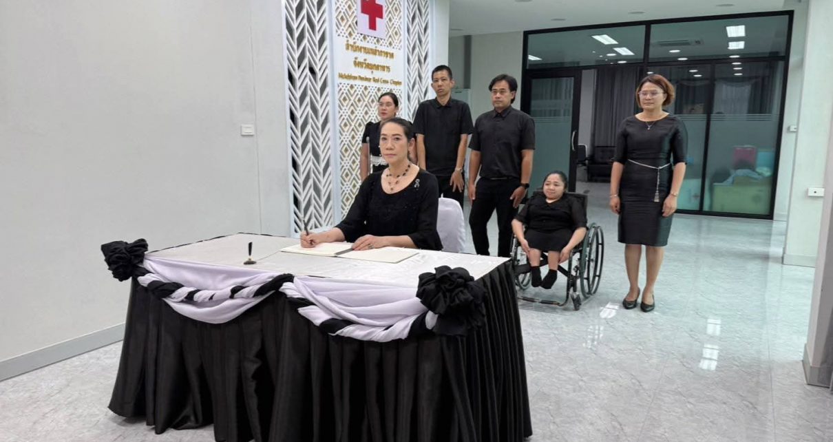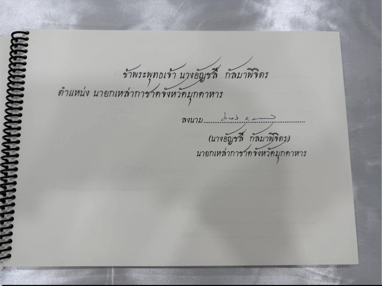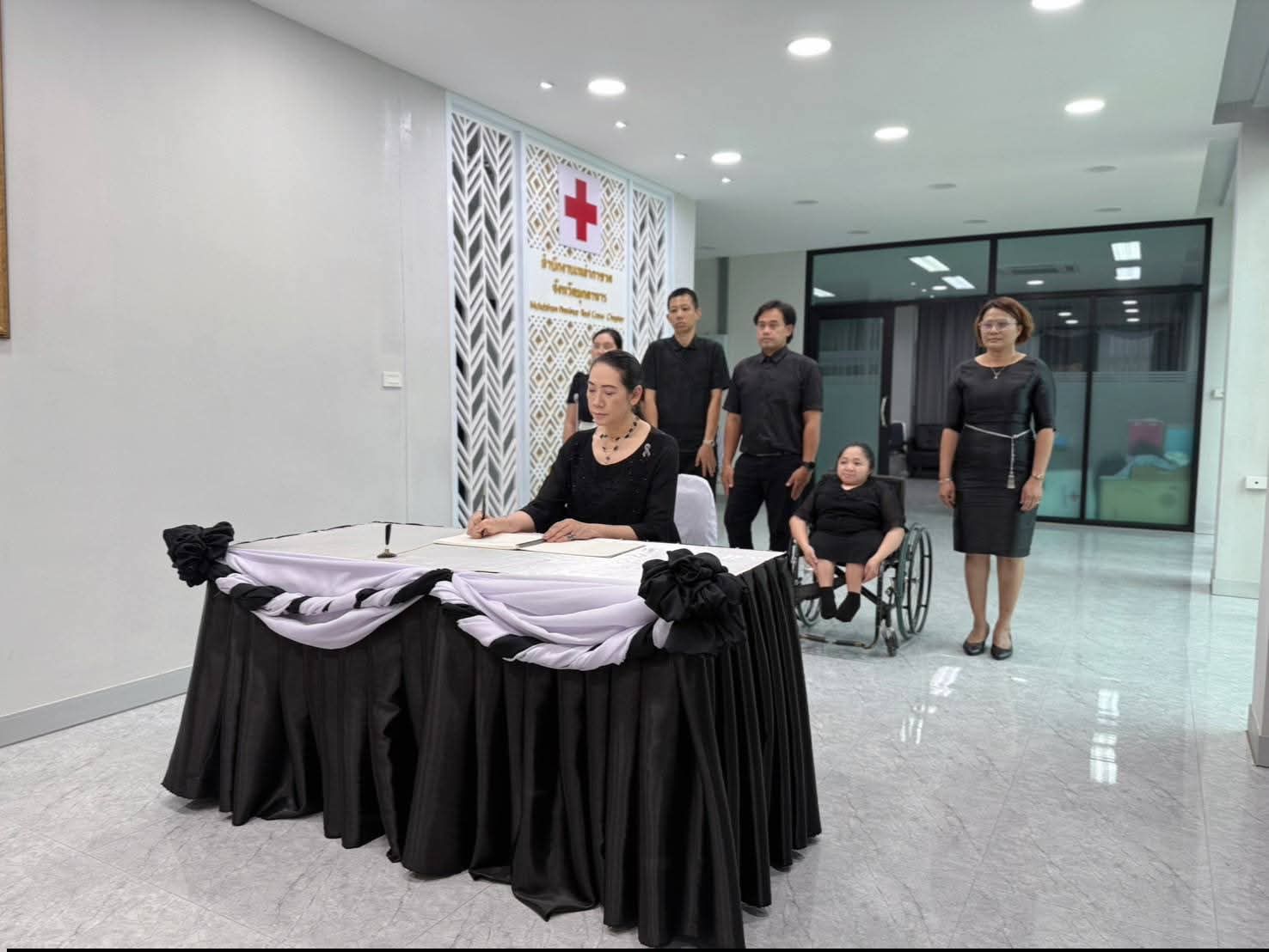 เหล่ากาชาดจังหวัดมุกดาหาร ลงนามแสดงความไว้อาลัยเบื้องหน้าพระฉายาลักษณ์ สมเด็จพระนางเจ้าสิริกิติ์ พระบรมราชินีนาถ พระบรมราชชนนีพันปีหลวง