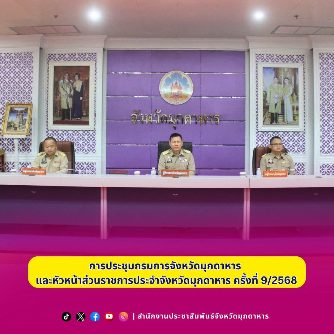 จังหวัดมุกดาหาร – เมื่อวันที่ 29 กันยายน 2568 เวลา 09.30 น. นายวรญาณ บุญณราช ผู้ว่าราชการจังหวัดมุกดาหาร เป็นประธานการประชุมกรมการจังหวัดมุกดาหารและหัวหน้าส่วนราชการประจำจังหวัดมุกดาหาร ครั้งที่ 9/2568 ณ ห้องประชุมแก้วกินรี ชั้น 5 ศาลากลางจังหวัดมุกดาหาร