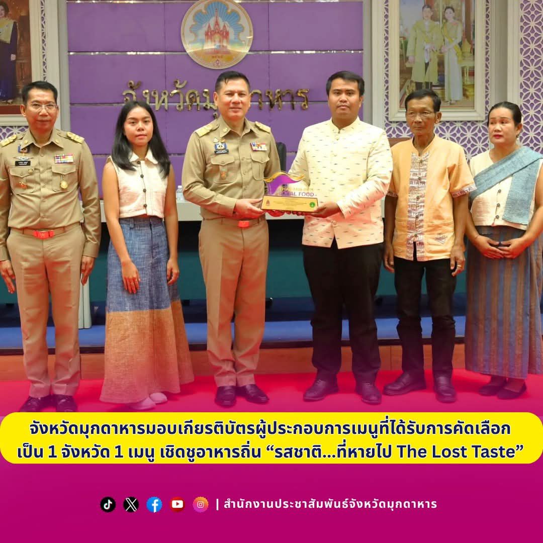 ผู้ประกอบการเมนูอาหารท้องถิ่น: มอบเกียรติบัตรแก่ผู้ประกอบการเมนูที่ได้รับการคัดเลือกเป็น 1 จังหวัด 1 เมนู เชิดชูอาหารถิ่น “รสชาติ…ที่หายไป The Lost Taste” ประจำปีงบประมาณ พ.ศ. 2568
