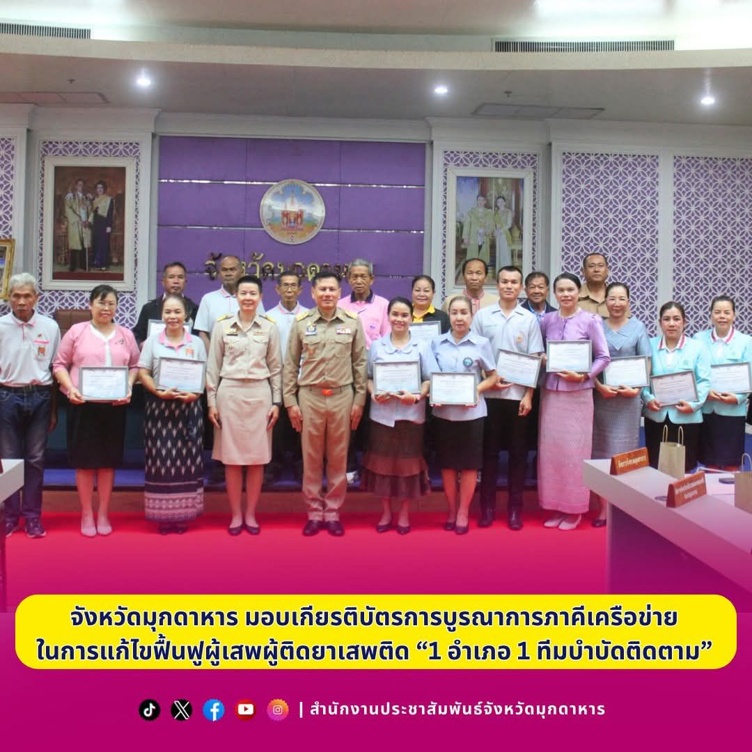 การแก้ไขปัญหายาเสพติด: มอบเกียรติบัตรการบูรณาการภาคีเครือข่าย ในการแก้ไขฟื้นฟูผู้เสพผู้ติดยาเสพติด “1 อำเภอ 1 ทีมบำบัดติดตาม”