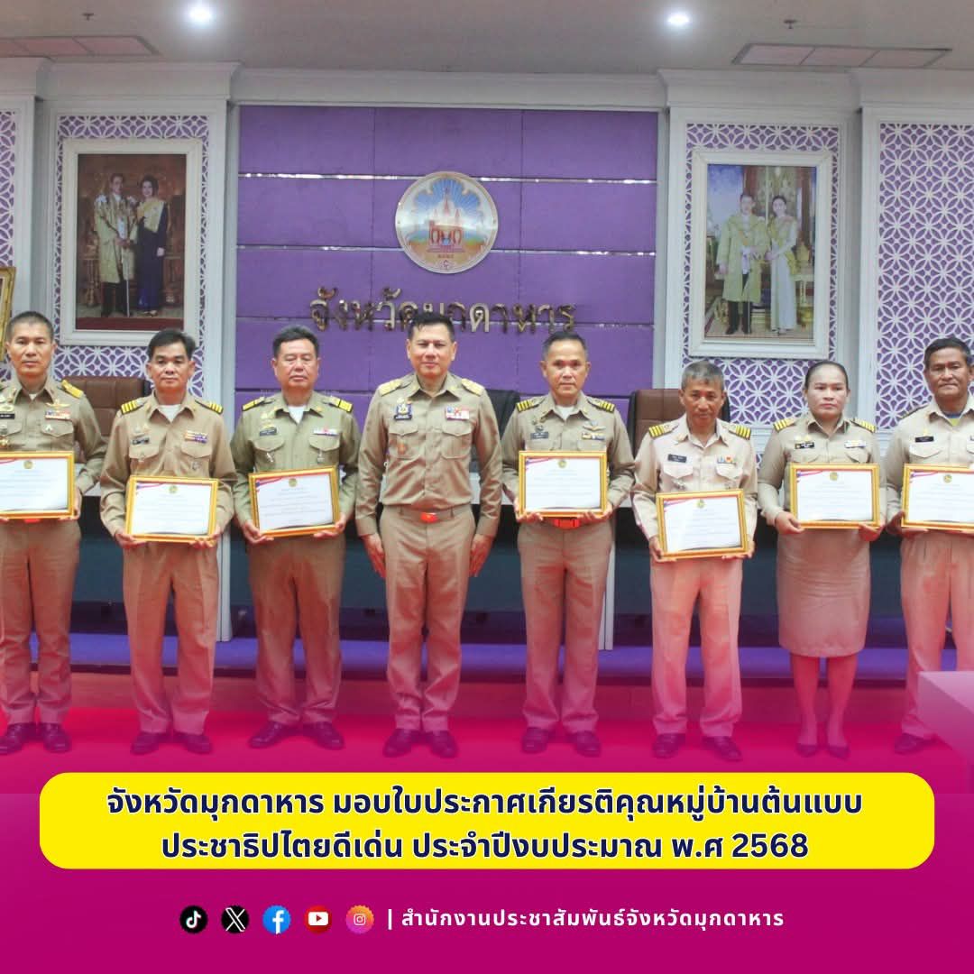 การเมืองการปกครอง: มอบใบประกาศเกียรติคุณ หมู่บ้านต้นแบบประชาธิปไตยดีเด่น ประจำปีงบประมาณ พ.ศ. 2568