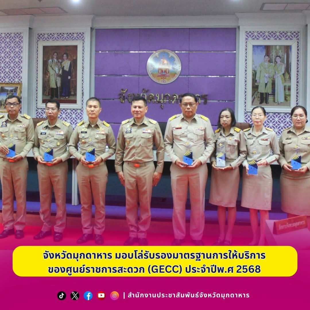 การบริการภาครัฐ: มอบโล่รับรองมาตรฐานการให้บริการของ ศูนย์ราชการสะดวก (GECC) ประจำปี พ.ศ. 2568