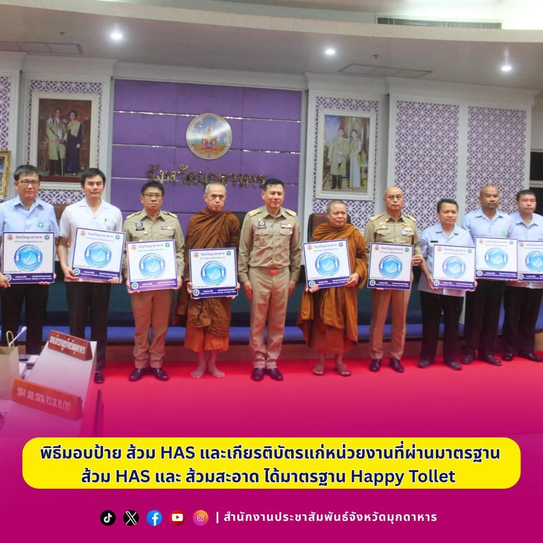สุขาภิบาล: มอบป้าย ส้วม HAS และเกียรติบัตรแก่หน่วยงานที่ผ่านมาตรฐานส้วม HAS และ ส้วมสะอาด ได้มาตรฐาน Happy Tollet